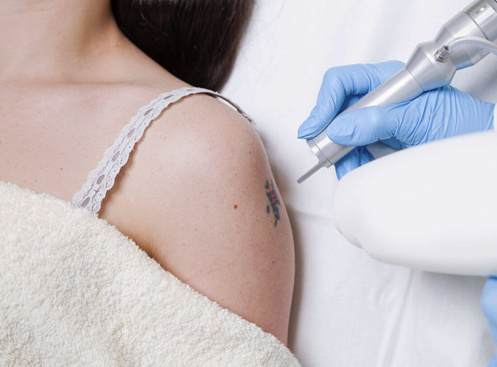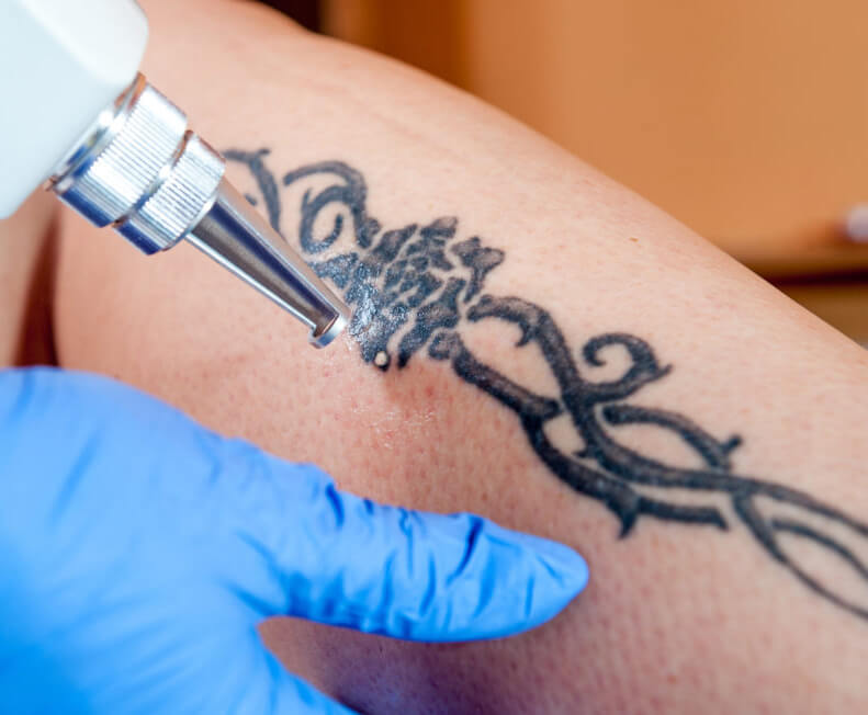Tattoo removal treatment uses intense pulses of light that are precisely targeted to the tattoo pigmentation on the skin. It degrades the ink molecules. The ink is then naturally absorbed into your body by your immune system without harming the surrounding tissue before being expelled.